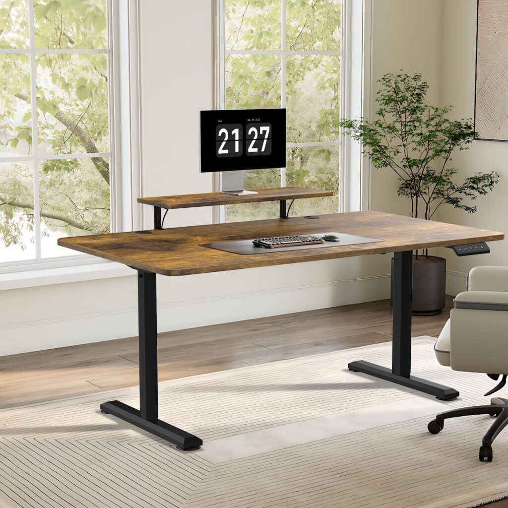Si no dispones de una mesa o escritorio adecuada para el teletrabajo, este escritorio elevable eléctrico es una excelente adición para cualquier espacio de teletrabajo, ofreciendo flexibilidad y comodidad gracias a su capacidad de ajuste en altura. Este escritorio no solo mejora la ergonomía sino que también permite alternar fácilmente entre posiciones de trabajo sentado y de pie, promoviendo una postura saludable y reduciendo la fatiga durante largas jornadas de trabajo.