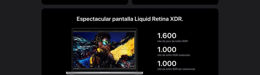 - Pantalla: Liquid Retina XDR de 14,2 pulgadas (¡Ojo a esto!)