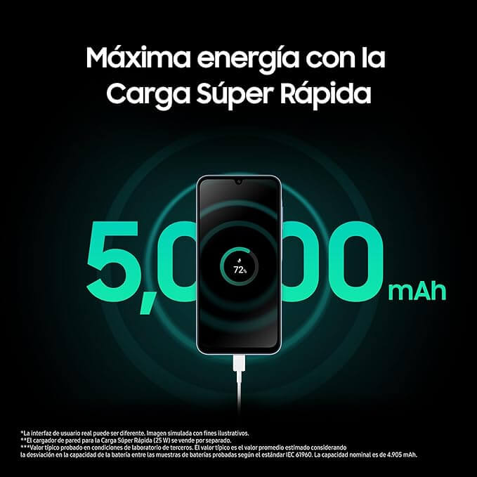 - Batería: 5000 mAh con soporte para carga rápida de 25W.